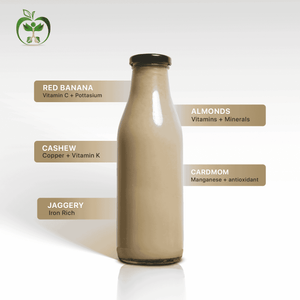 Red Banana (60%), Jaggery (33%) Almond (3%), Cashew (3%), Cardamom. No Preservatives. All Natural Ingredients.