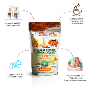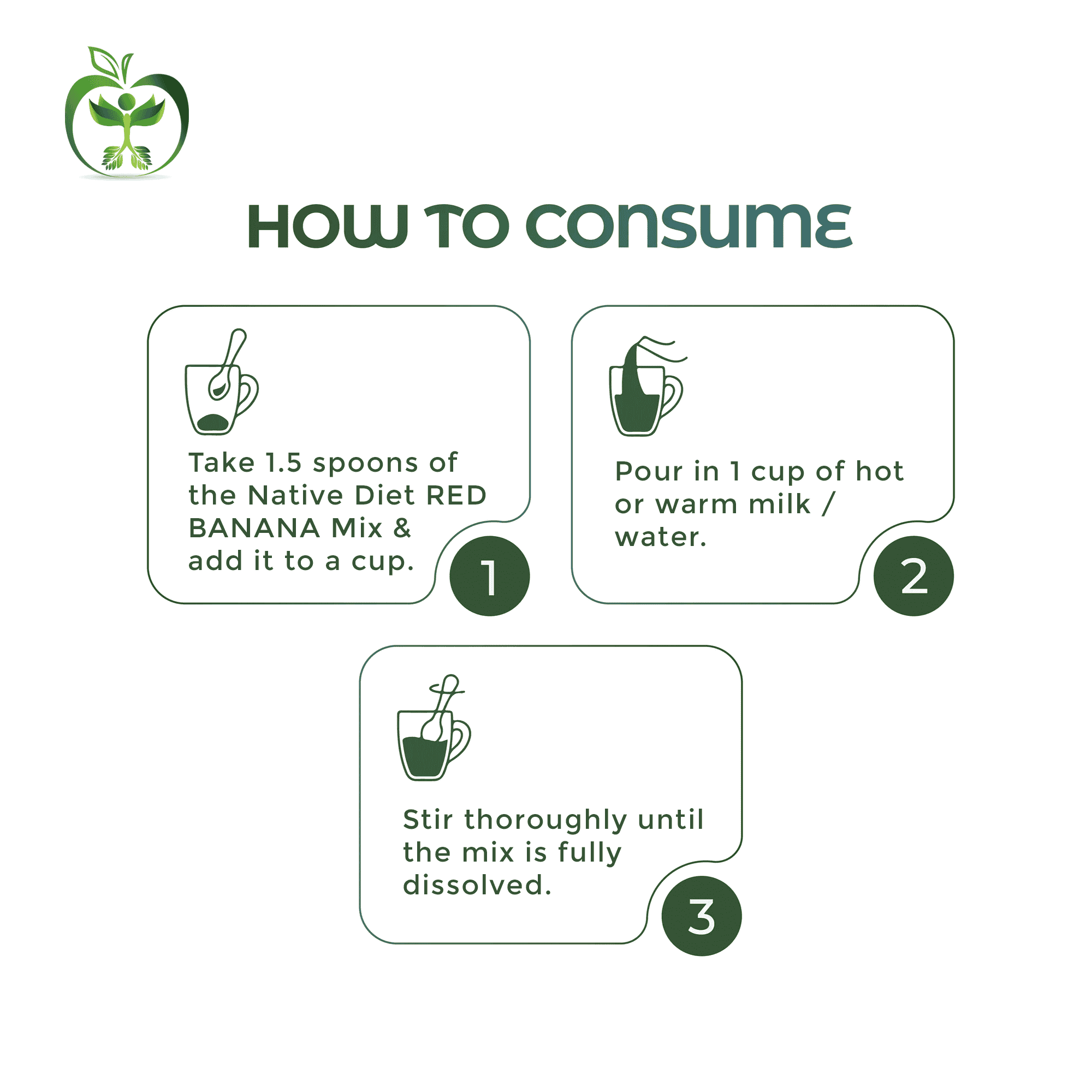 Mix: Add 2 spoons Mix to 1 cup of warm Milk. Stir well until smooth. Optional: Add Jaggery or Honey for sweetness.